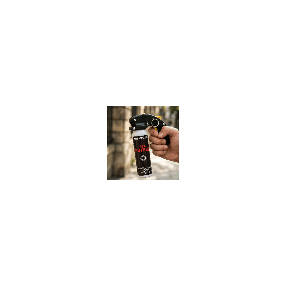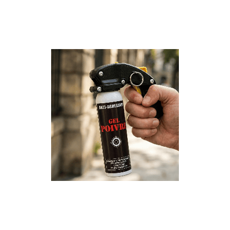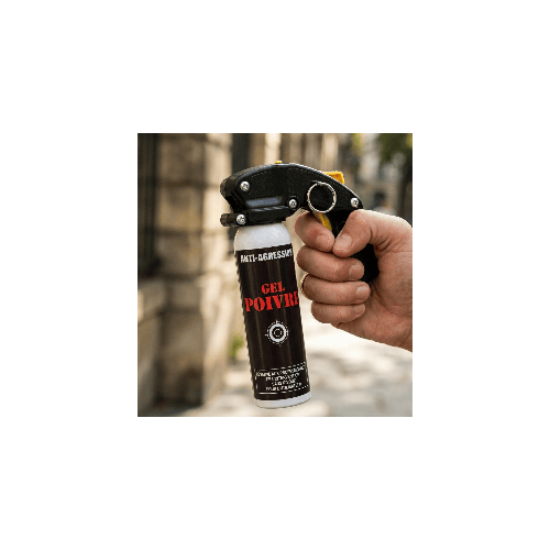 - Aérosol anti-agression gel poivre 100 ml avec poignée et clip ceinture